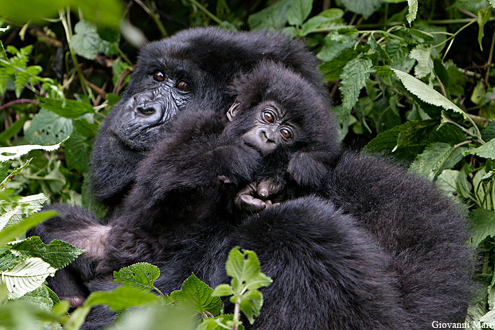 Mountain gorillas, by science referred to as gorilla beringei, are a sub-species of Eastern gorillas. There are at least 1004 mountain gorillas living in the mountainous region tropical forests of Bwindi Impenetrable National Park and the Virunga Conservation Area. The Virunga Conservation Area includes Uganda’s Mgahinga Gorilla National Park, Rwanda’s Volcanoes National Park, and Congo’s the Virunga region National Park.